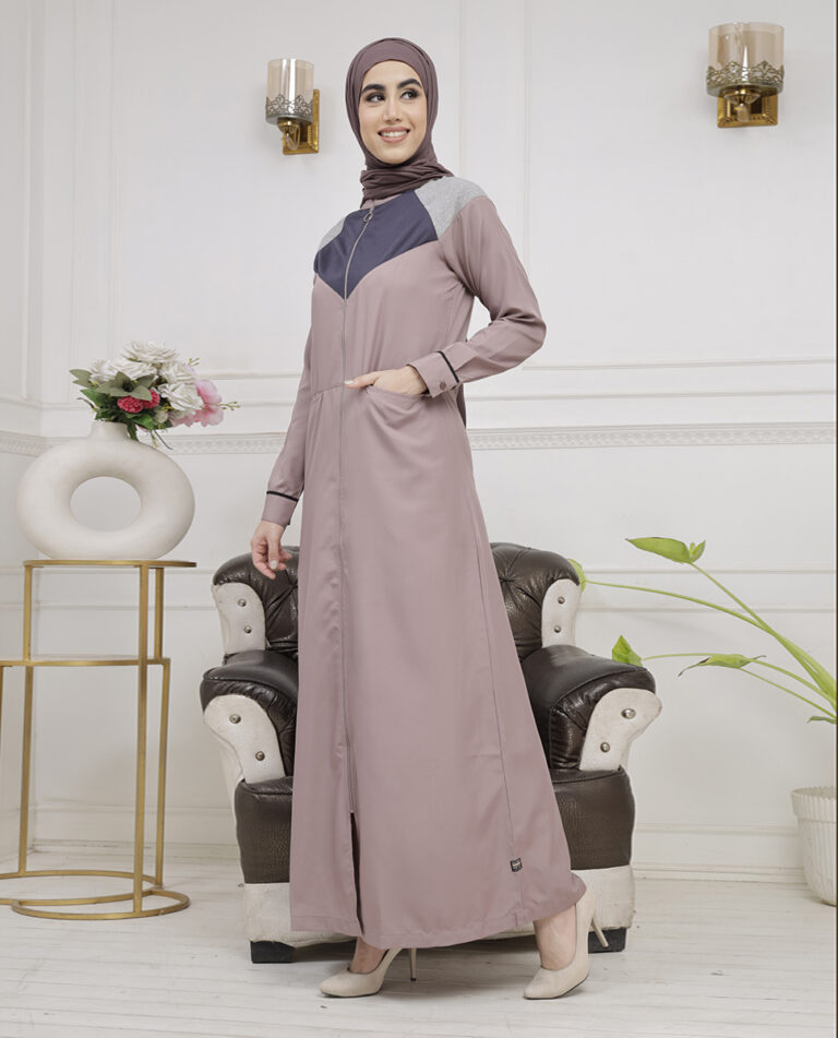 Crafted in a delicate shade of dusty peach, this Full Front Open Abaya exudes understated charm and grace. The soft hue complements various skin tones, radiating warmth and tranquility wherever you go.Shop now and get ready for the compliments