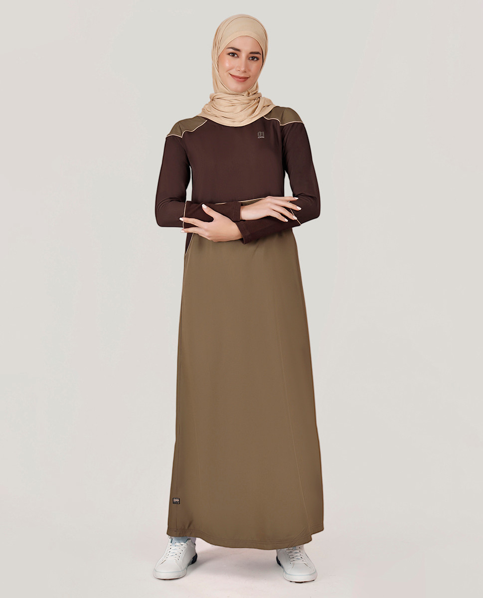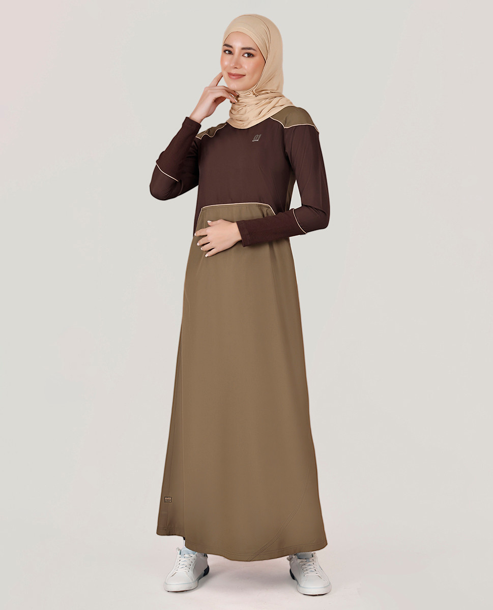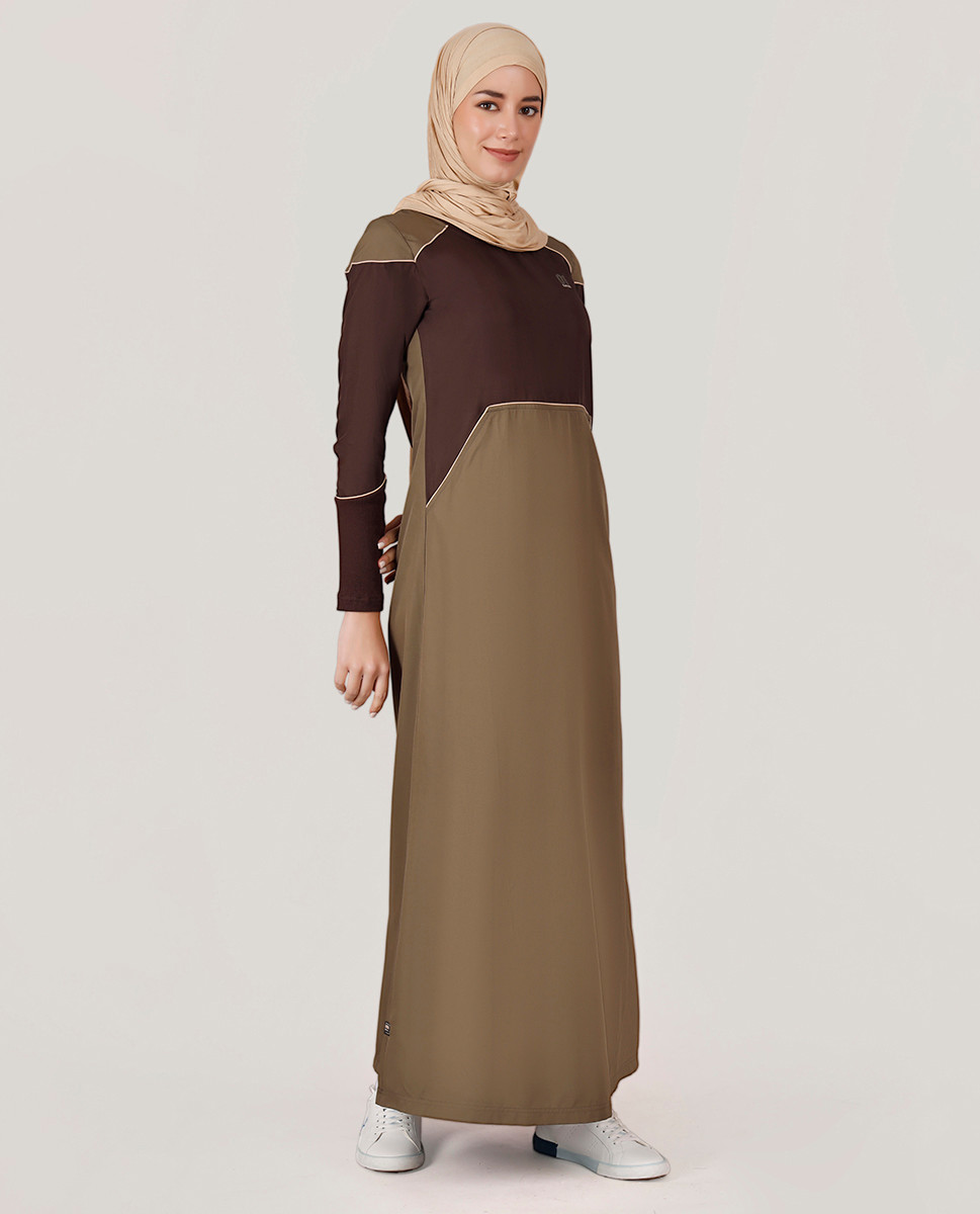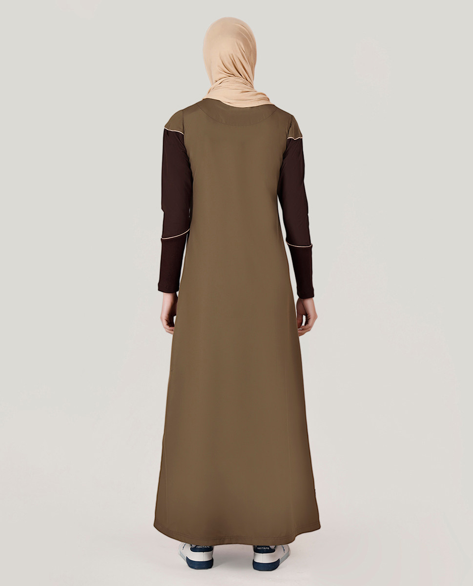 This beautiful olive colored jilbab with contrast color at chest and sleeves is your go to pick for everyday casual styling. Features panelled bottom and pockets on both sides for style and functionality. Shop yours NOW!